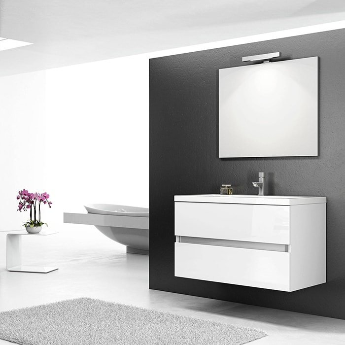 This wall mounted vanity unit is one of the smaller in the range, perfect for space saving.
